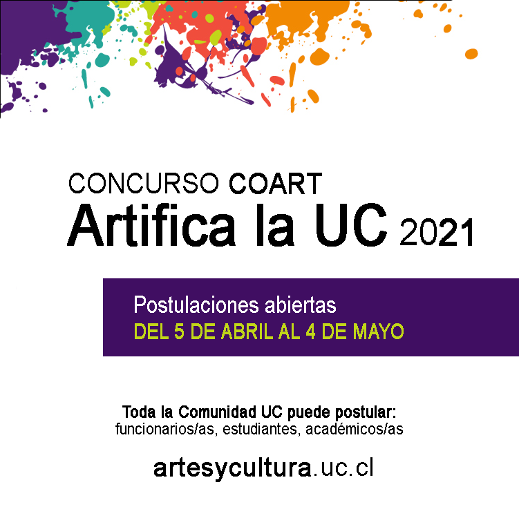 ¡Todos podemos crear! Si tienen alguna idea de creación artística postulen al concurso Artifica la UC de la DAC, el que financia proyectos de hasta $600.000 para desarrollar proyectos artísticos.