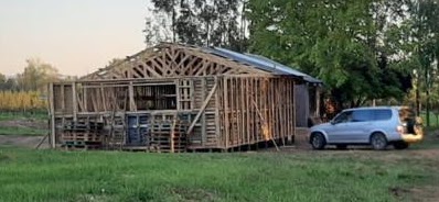 ¡Gran trabajo! Nuestro querido vrisionario del Centro de Innovación comparte con nosotros los avances de su casa sustentable hecha con palets en Molina (ver fotos).