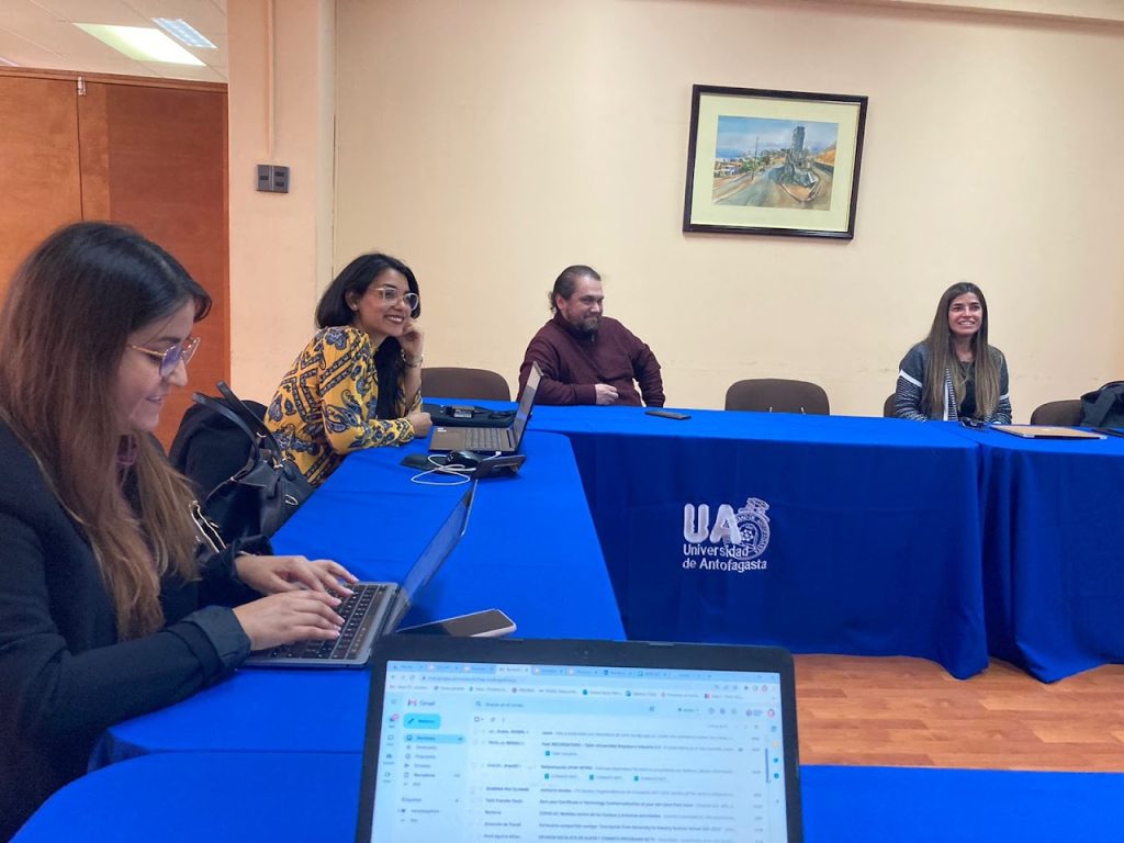 Los viajeros fueron Nancy Rampaphorn, subdirectora de Vinculación y Marketing Tecnológico; Francisco Navarro, jefe de Transferencia de Propiedad Industrial; y María Fernanda Hernández, coordinadora General del Proyecto InES I+D, quienes se reunieron con autoridades de la Oficina de Transferencia y Licenciamiento de la Universidad de Antofagasta y representantes de varias empresas de la región para ver posibles colaboraciones. ¡Felicitamos esta iniciativa!