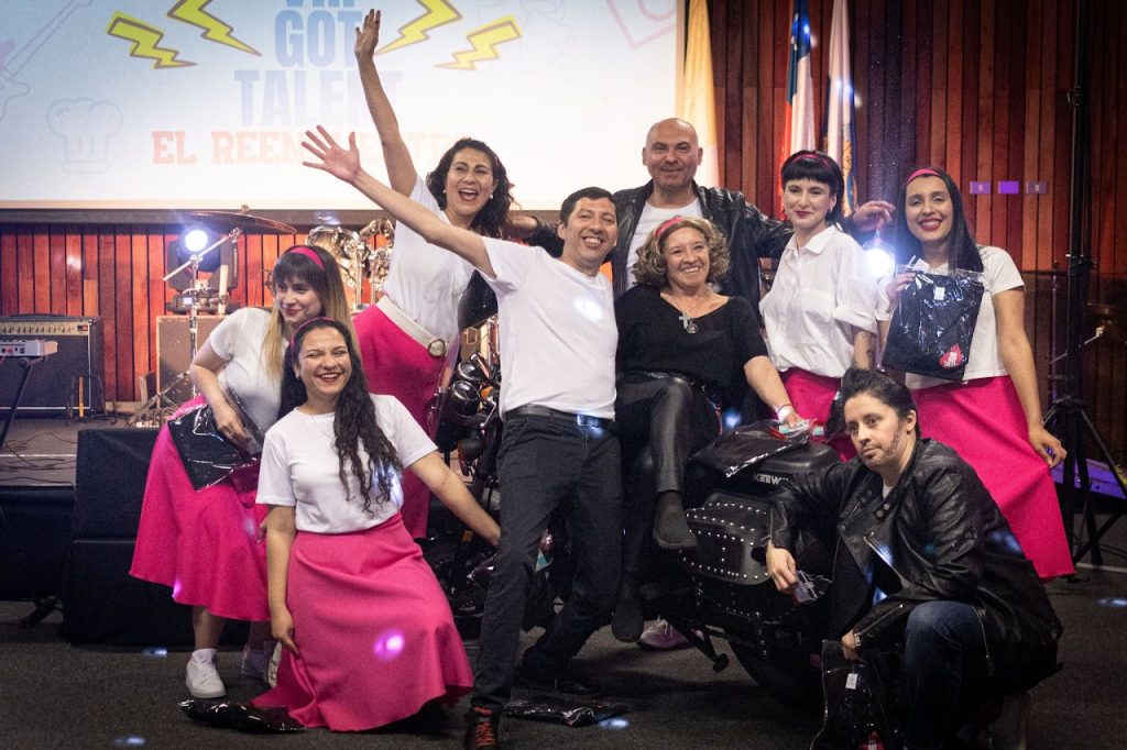 “Yo quería un baile donde se pudiera integrar a MEM y, como según yo, es una parte integral de la Vicerrectoría quería que fuera la principal, entonces pensando, me la imaginé de Olivia Newton, pero necesitábamos al hombre y Roberto como siempre es tan motivado quiso sumarse”, dijo. El resto de integrantes se fueron sumando y durante tres semanas prepararon la coreografía durante media hora de la colación. “La idea de la moto la dio María Inés, queríamos un plus, necesitábamos cosas que complementaran la presentación y como Héctor y yo tenemos moto, surgió la idea. Inicialmente pensábamos dejarla como parte del escenario, pero Jaime (Centro de Innovación) nos dio la luz verde para entrar con la moto, así que altiro nos motivamos”, recordó. En relación a haber sido elegidos como los favoritos del público VGT, Mariana dijo que fue una super linda experiencia, “más que por haber sido elegidos favoritos del público, fue una instancia que nos unió mucho como grupo. No teníamos altas expectativas, estábamos más que felices con lo que disfrutamos de la experiencia, todas las risas en los ensayos, el despejarnos un poco de la jornada laboral, la misma actividad física, el dejar volar nuestra creatividad dando ideas para que saliera más lindo y sentirnos bien y cómodos con el baile. Agradecemos mucho a quienes votaron por el grupo de VRI-llantina, y ¡Nos vemos en el próximo VRI Got Talent!”.