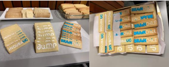 El lado innovador lo entregó el coordinador venezolano, Francisco Cartagena, quien sorprendió a todos con las galletas 3D que llevaban el logo de los programas de emprendimiento: Jump, Brain, Discovery A, Incuba UC, Red de Mentores y Red Ángeles.
