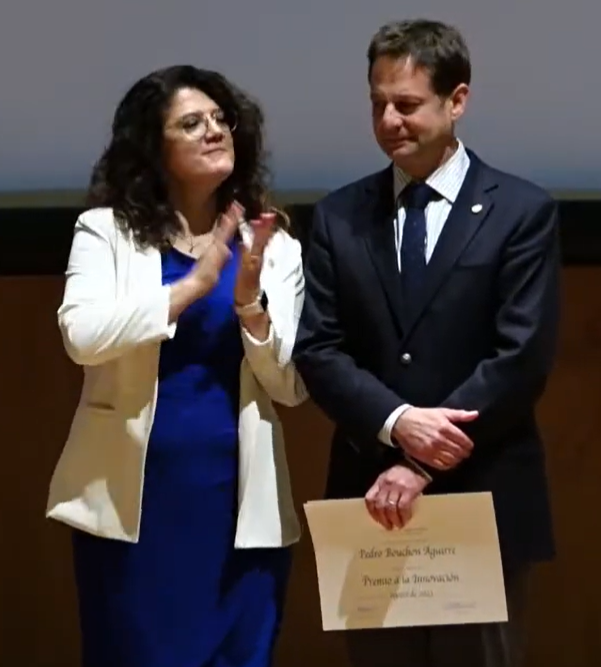 El Premio Innovación fue entregado por la decana de Ingeniería UC, Loreto Valenzuela; y el director de Investigación e Innovación, José Miguel Cembrano. ¡Aplaudimos a Pedro!