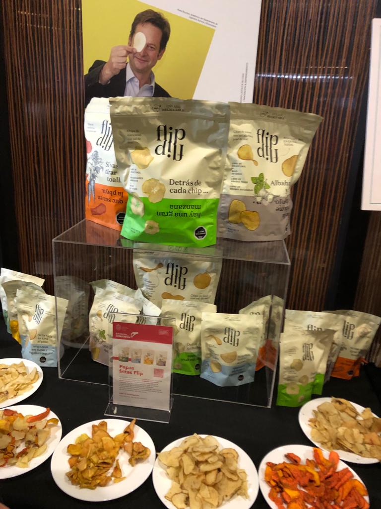¡Se pasaron para originales! En el lanzamiento del “Libro de innovación y emprendimiento: 100 casos de alto impacto” todos pudimos degustar, en un solo lugar, de todas las variedades de las muy conocidas papitas Flip, delicioso snack saludable creado por nuestro vicerrector de Investigación, quien muy amablemente se tomó una foto para nuestro VRIsionario. Las papitas estuvieron deliciosas, con la consistencia perfecta y el punto de sal ideal. Los sabores muy sabrosos, pudimos probar el de cebolla; ajo y albahaca; camote y zanahoria; el mix de vegetales; y la de sal de mar. Todas estaban muy sabrosas, pero tengo que admitir que la que más me gustó y sorprendió fue la manzana verde con sal de mar, sumamente innovadora y distinta, realmente ¡un hit! Si no las han probado los invitamos a hacerlo, pueden solicitarlas online en distintos sitios web. ¡Super deliciosas!