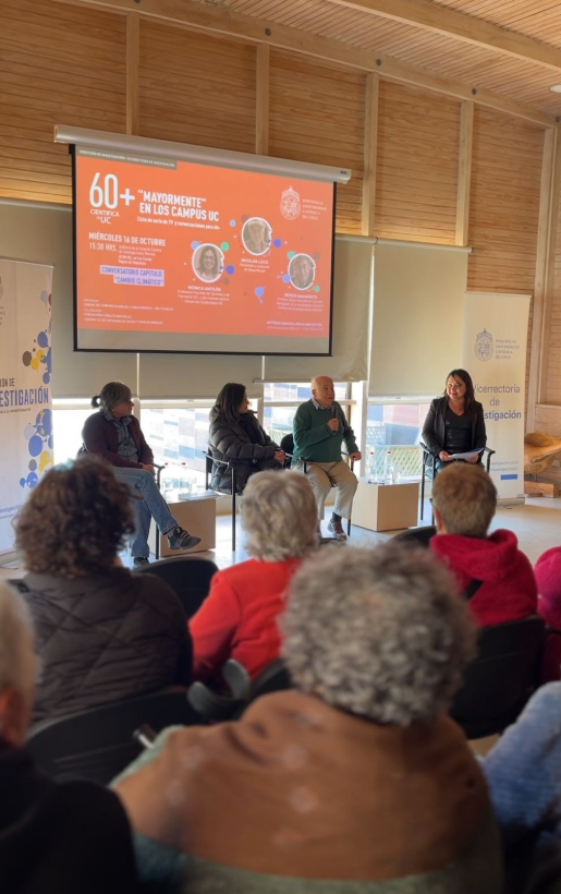 Es así que en octubre, la UCC liderada por Eliette Angel estuvo junto a MayorMente y Nicolás Luco, destacado periodista científico, columnista, líder mayor y conductor de esta iniciativa en dos puntos estratégicos para su difusión, como son la Estación Costera de Investigaciones Marinas (ECIM) y el Campus Villarrica UC, donde se transmitieron capítulos de la serie y se realizaron conversatorios con decenas de adultos mayores que se dieron cita en cada uno de estos puntos.