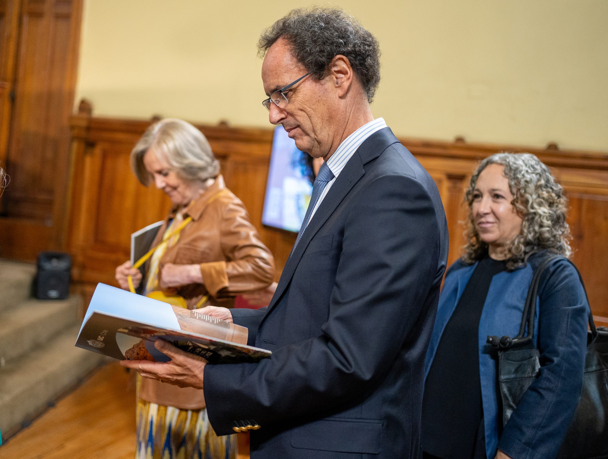 En el evento pudimos ver al rector UC, Juan Carlos de la Llera, quien estaba muy concentrado revisando el contenido del libro. También vimos a nuestras queridas vrisionarias de la Dirección de Investigación apoyando como siempre de forma muy entusiasta en la entrada del Salón de Honor, mientras entregaban libros y dando la bienvenida a todos los asistentes. ¡Aplaudimos este nivel de compromiso con su unidad! ¡Excelente!