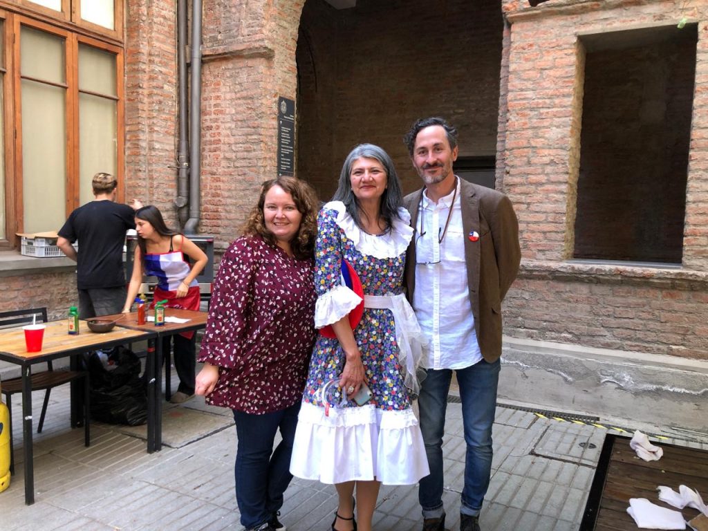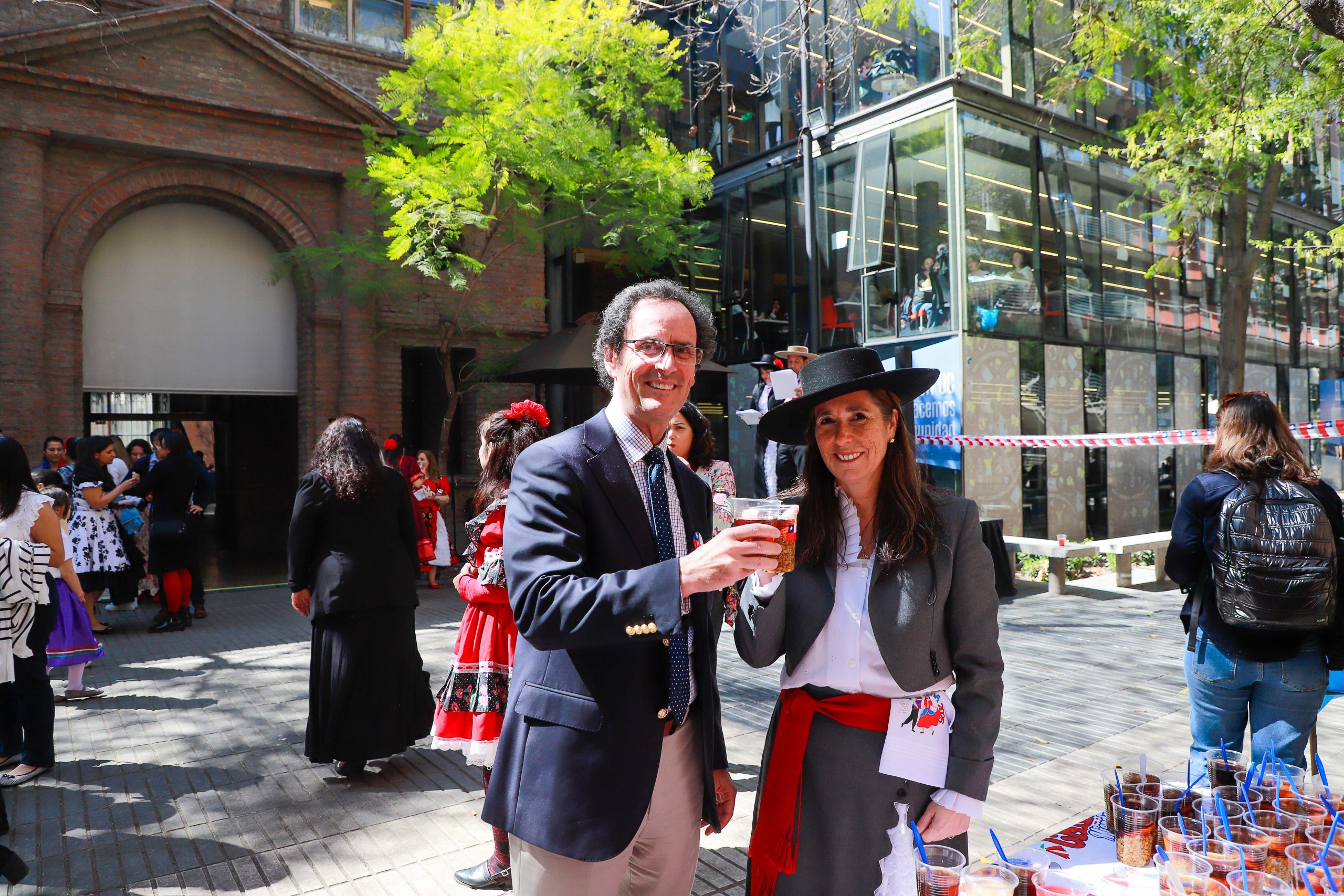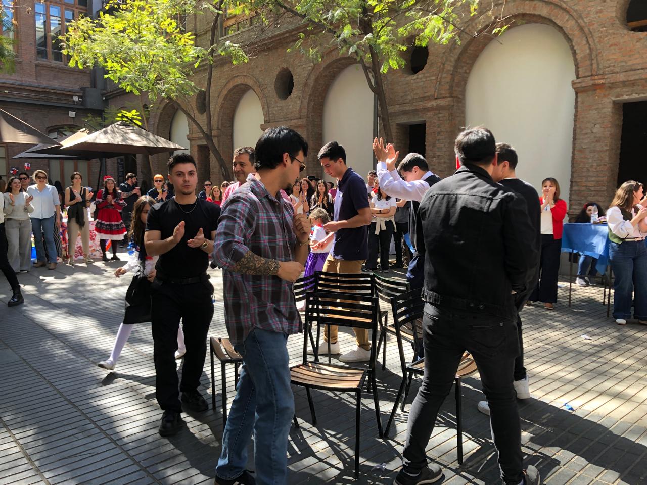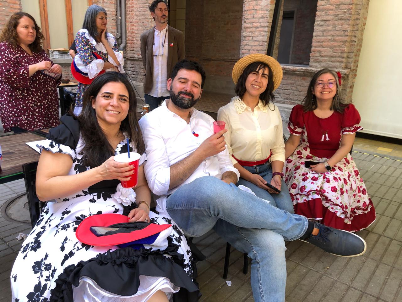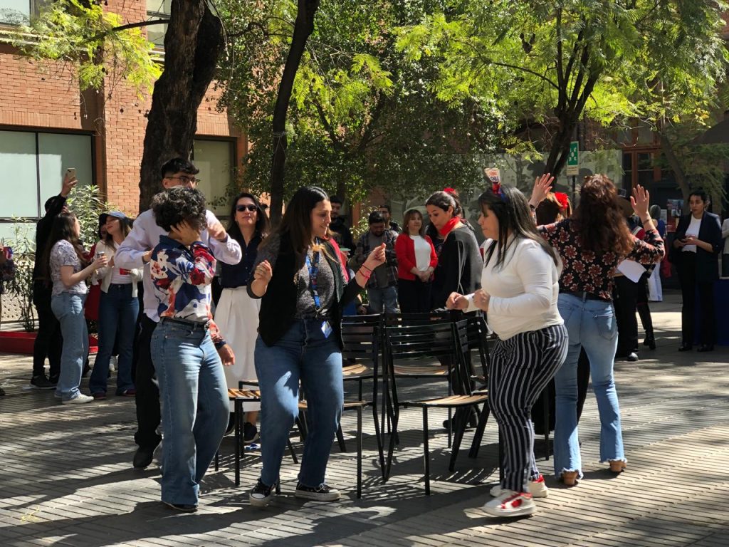 Todo sucedió en el patio de la Facultad de Derecho en un ambiente bien fiestero en el que también participó, con mucha alegría, nuestro rector UC, Juan Carlos De La Llera; la vicerrectora de la VRAI, María Montt; y nuestra VRIP, María Angélica Fellenberg, a quien la vimos bailando impecablemente una cueca y compartiendo con cada uno de los equipos de la vicerrectoría.