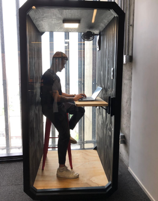¡Buena iniciativa! Nuestros vrisionarios de Transferencia cuentan con una original cabina para reuniones online con mayor privacidad